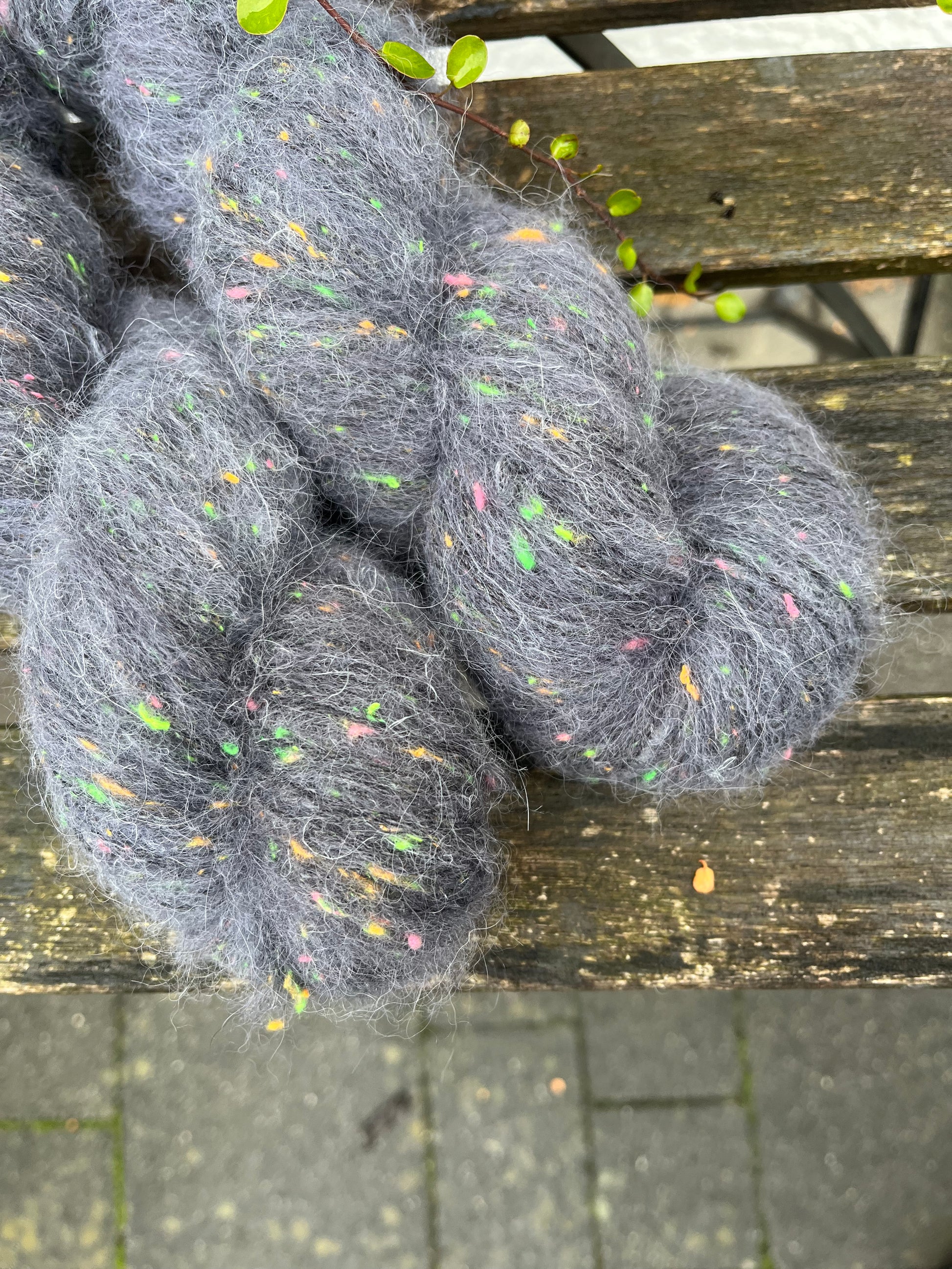 42% Merino sw/ 32% Alpaka/ 8% Leinen/18% Neon-Neps