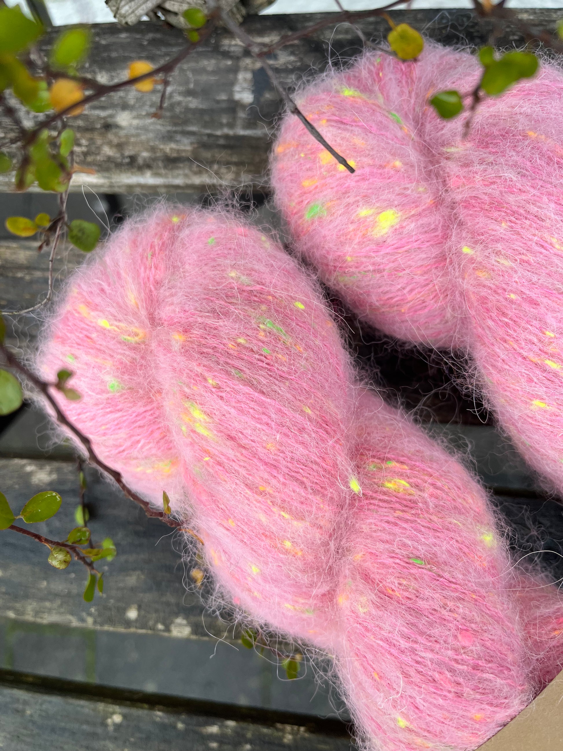 ist ein weiches, flauschiges Garn mit neonfarbenen Highlights, was deinem Projekt einen besonderen Look verleiht.