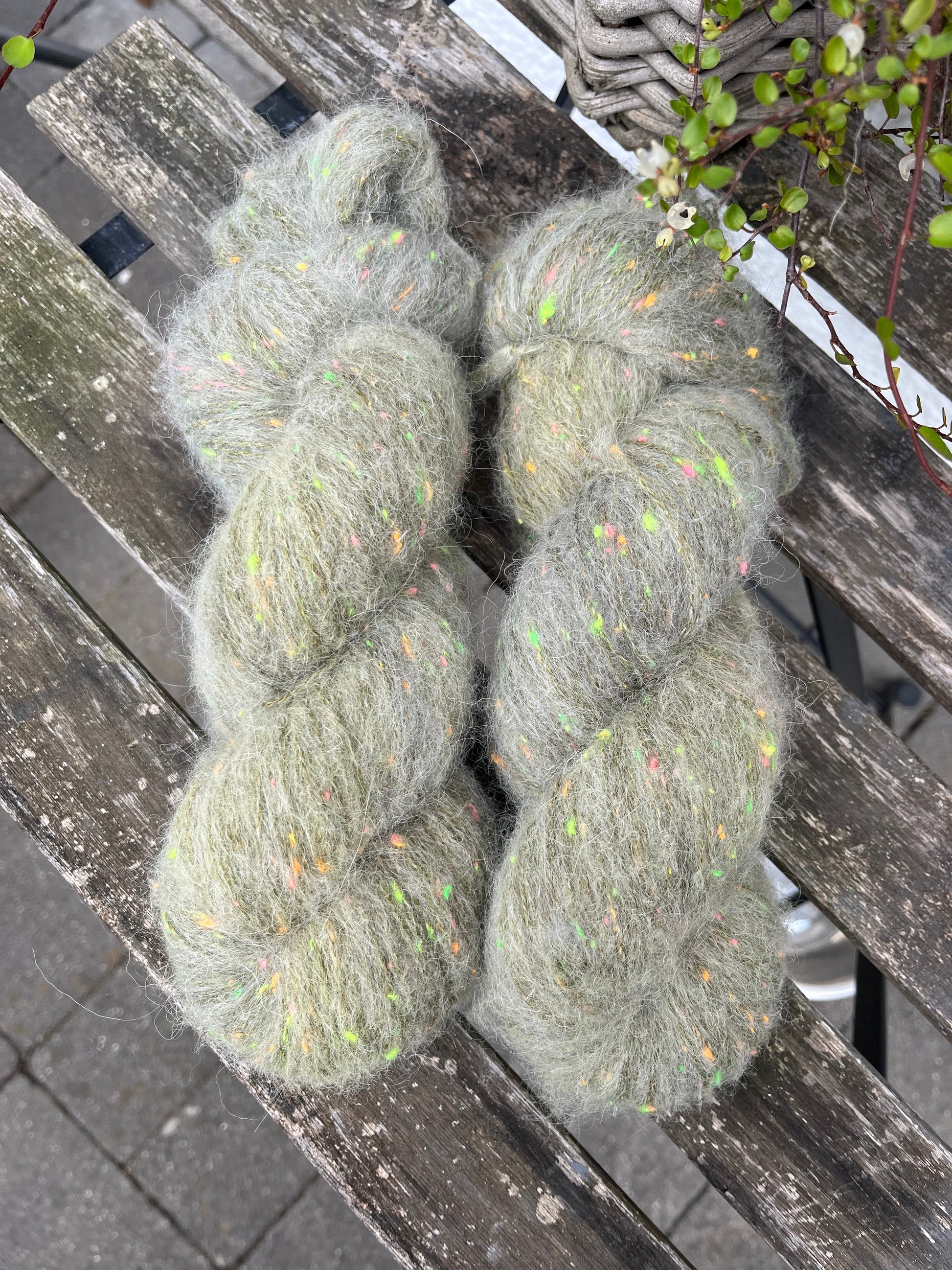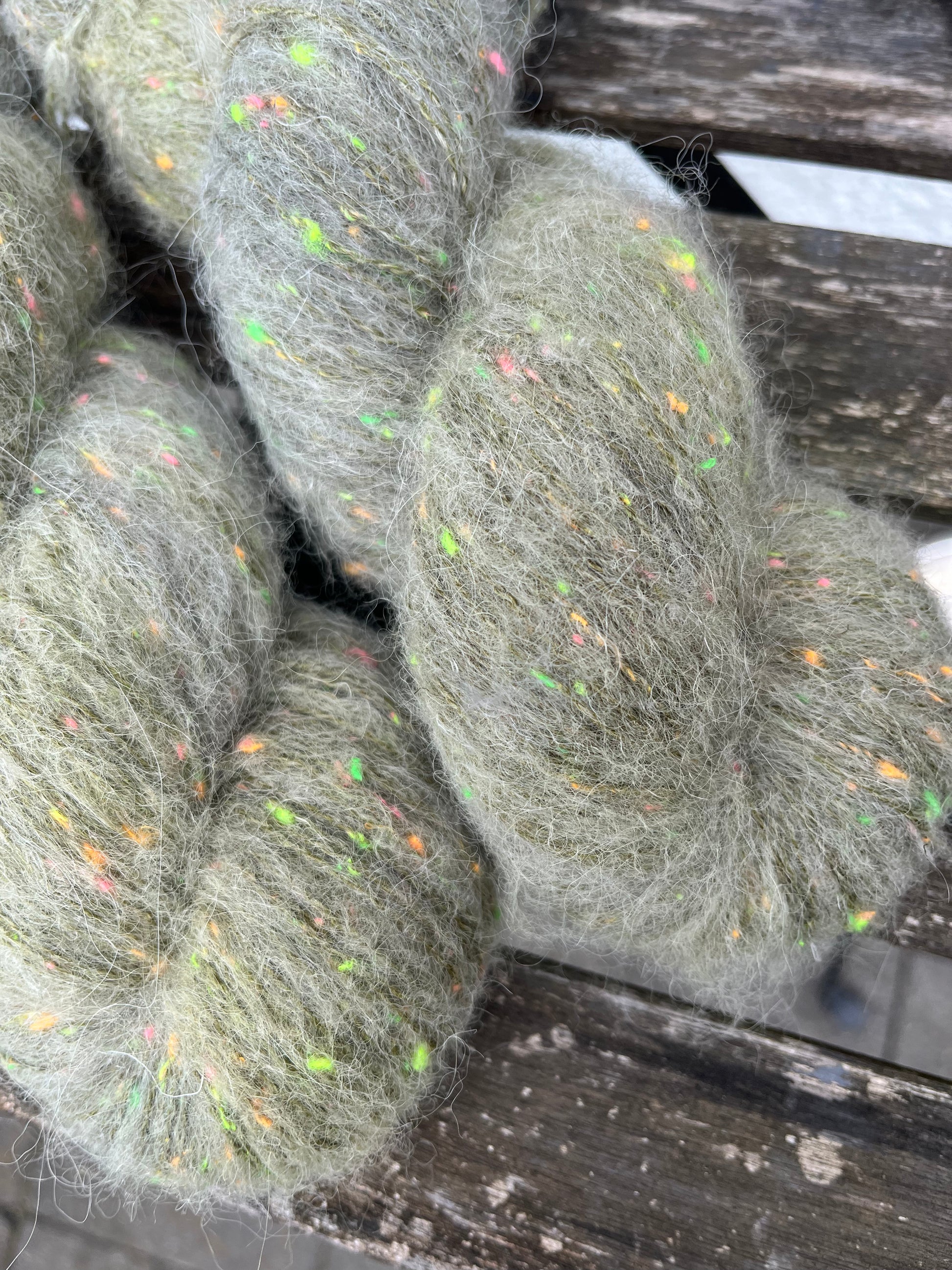 42% Merino sw/ 32% Alpaka/ 8% Leinen/18% Neon-Neps