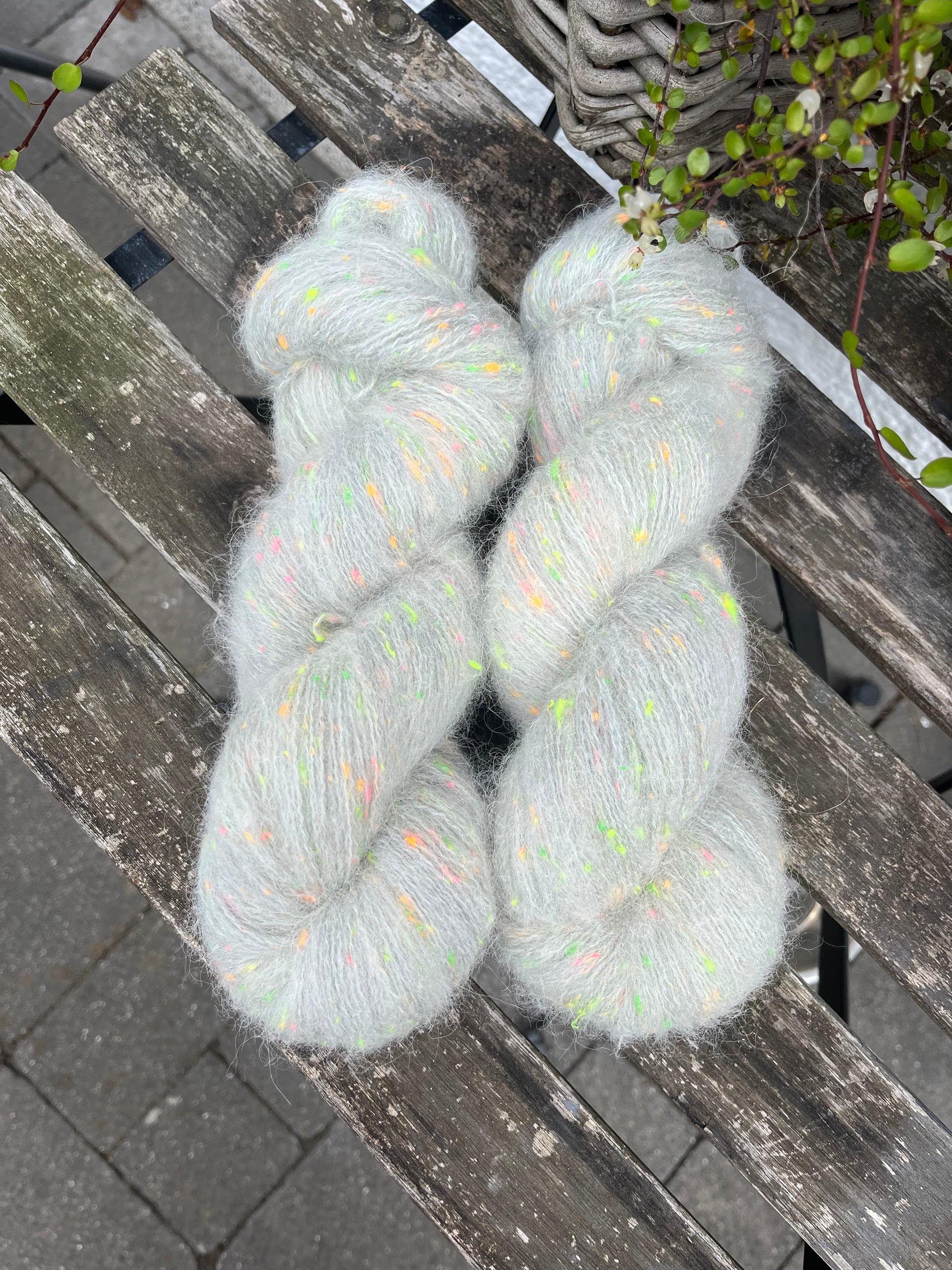 42% Merino sw/ 32% Alpaka/ 8% Leinen/18% Neon-Neps